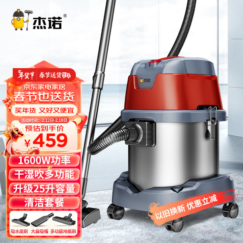 杰诺1600W大功率干湿吹三用桶式吸尘器家用商用办公室地毯装修JN603价格:489.00元!