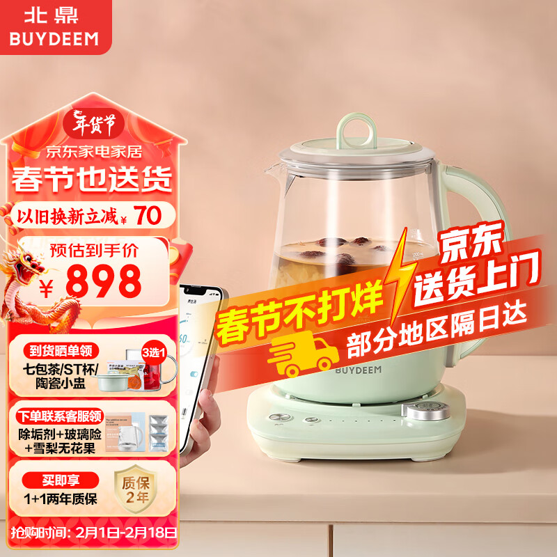 北鼎(Buydeem)智能养生壶烧水壶 家用电热水壶多功能煮茶器恒温热水壶智能APP互联 Smart K单壶浅杉绿价格:898.00元!