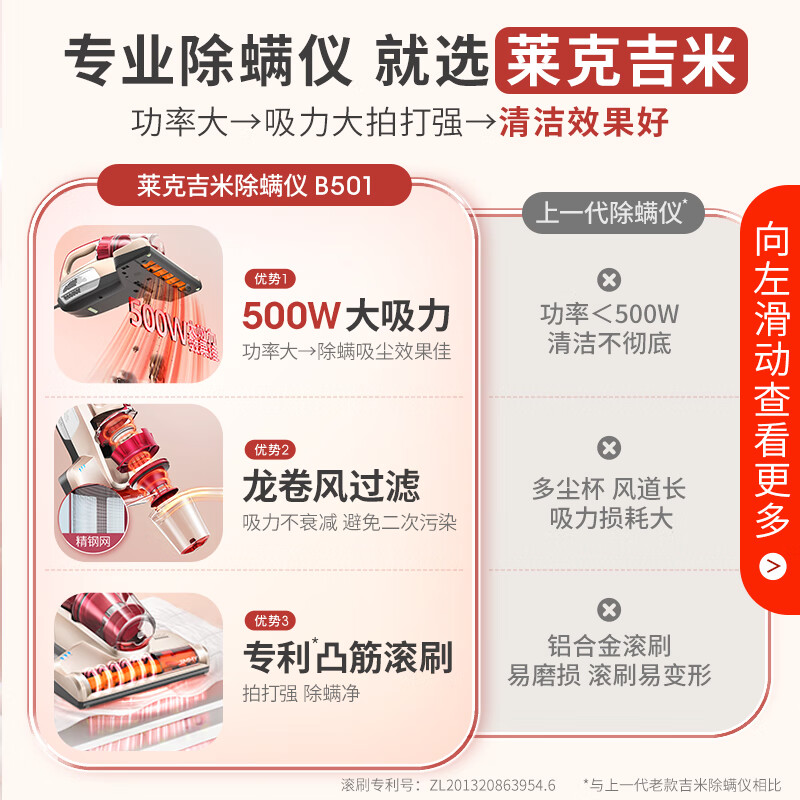 莱克吉米除螨吸尘神器B501家用床上小型手持紫外线杀菌去螨虫超声波升级大吸力除螨仪一体机【甄拍】价格:388.00元!