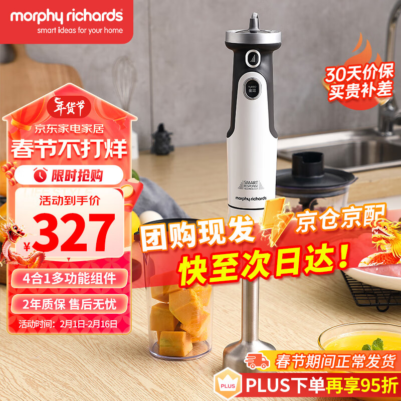 摩飞电器(Morphyrichards)绞肉机 家用多功能料理棒 婴儿辅食机 分体可拆 多配件搭配 佐料机 MR6006 白色价格:327.00元!