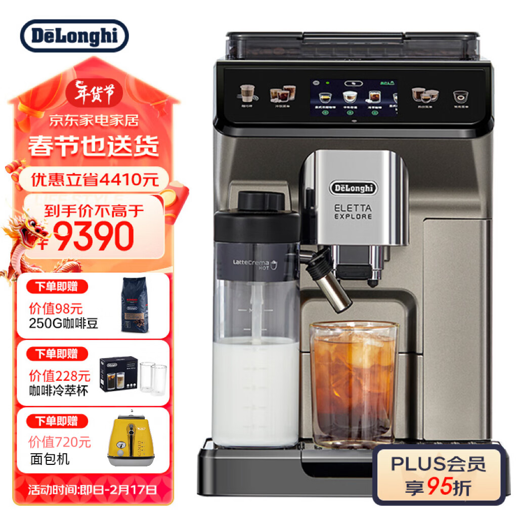 德龙(Delonghi)咖啡机 冷萃版探索者 全自动咖啡机 家用 原装进口 智能互联 触控操作 ECAM450.86.T价格:9390.00元!
