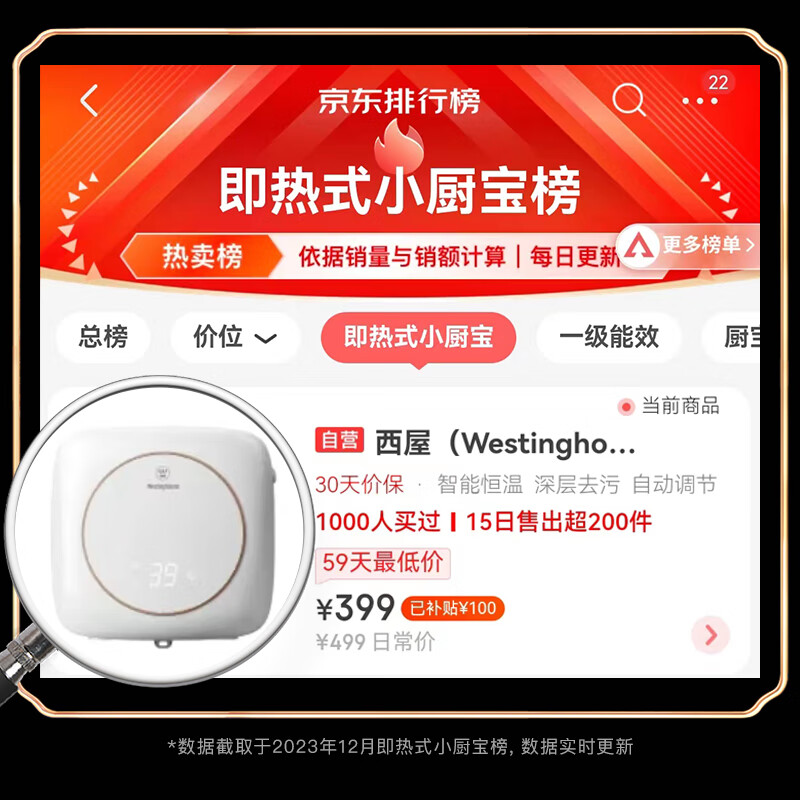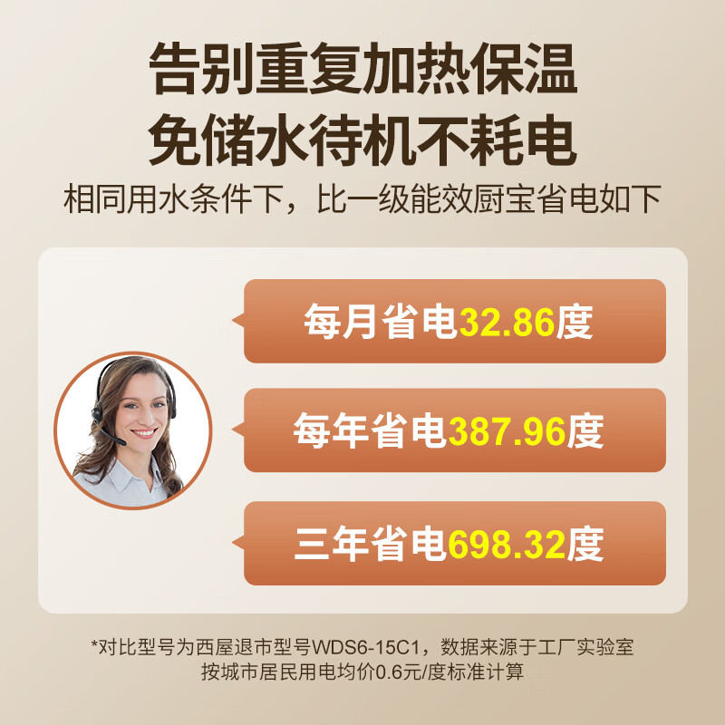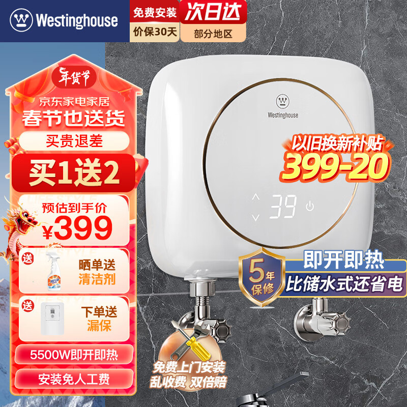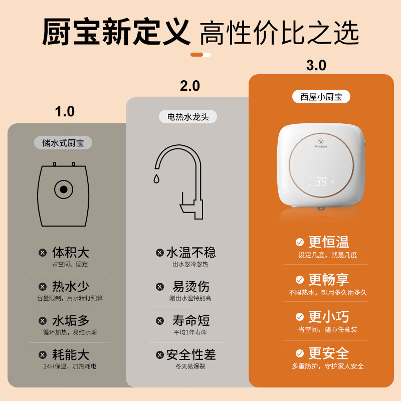 西屋(Westinghouse)即热式厨宝电热水器 5500W三档变频不限水量家用迷你热水宝 速热免储水式过水热暖水宝DSFH55311价格:399.00元!