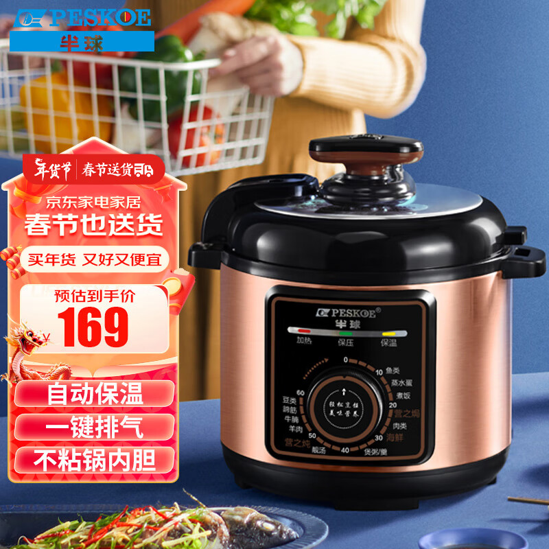 半球(PESKOE)电锅高压锅4升单胆家用煮饭煲 多功能电饭锅 X7J40价格:169.00元!