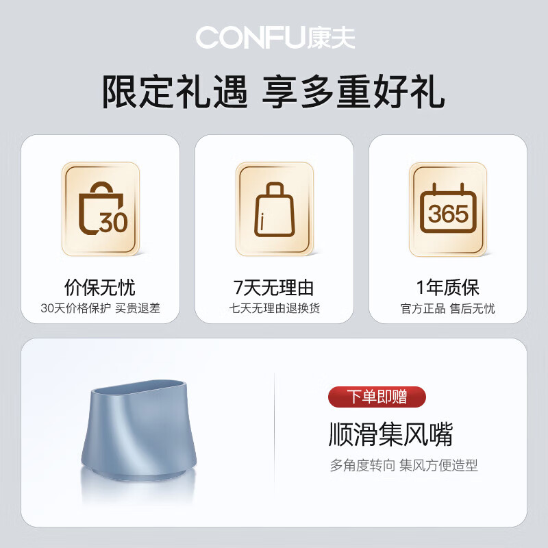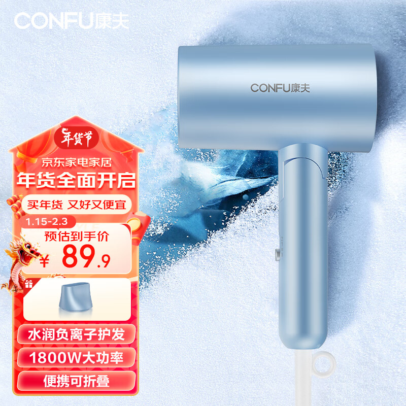 康夫(CONFU)电吹风机家用大功率大风力小巧可折叠理发店吹风筒1800W KF-3140负离子款价格:87.90元!