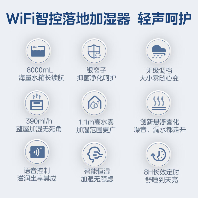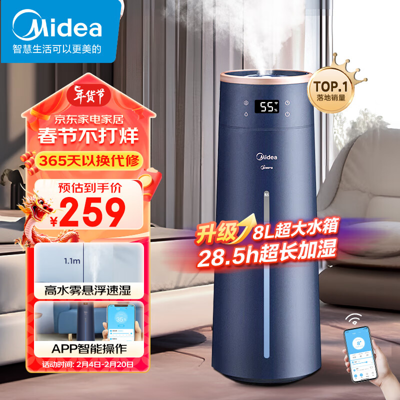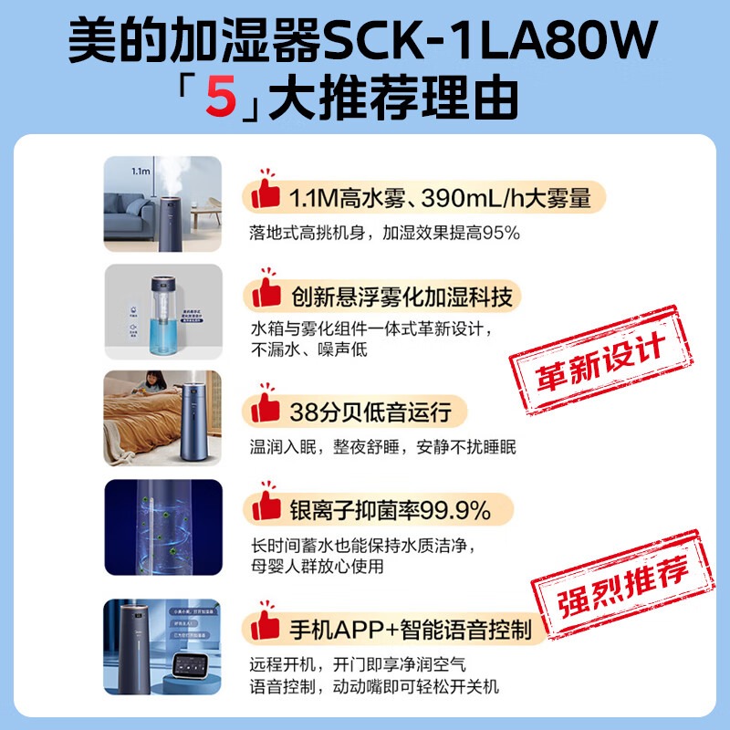 美的(Midea)加湿器卧室婴儿大容量办公桌面家用空气加湿器落地轻音立式客厅加湿净化礼物SCK-1LA80W价格:298.00元!