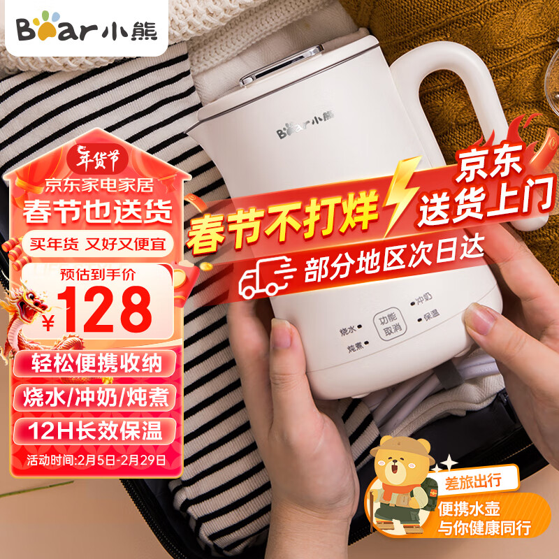 小熊(Bear)便携式烧水壶烧水杯电热水壶电水壶 0.6L迷你恒温水壶养生家用旅行冲奶热水壶ZDH-A06H1价格:128.00元!