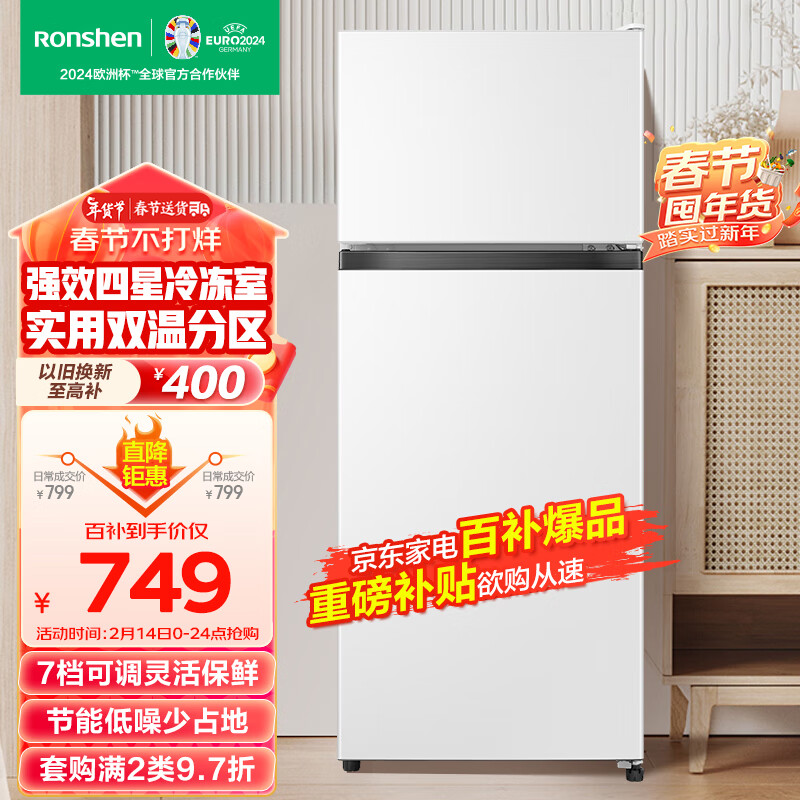 容声(Ronshen)125升两门双开门小冰箱小型迷你冰箱节能省电低噪家用公寓租房宿舍客厅冰箱BCD-125D11D白色价格:749.00元!