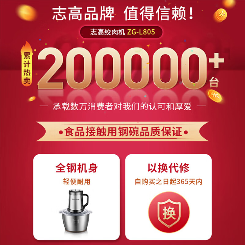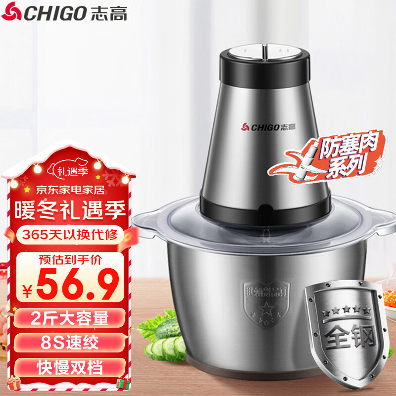 志高(CHIGO)绞肉机家用电动2L不锈钢多功能碎肉打肉切碎搅拌料理ZG-L805(2.0L)价格:56.90元!
