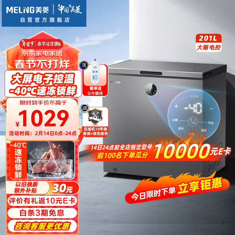 美菱(MELING)201升大眼电控减霜-40℃锁鲜家用冷藏冷冻转换小冷柜一级节能省电顶开门BC/BD-201DTECX价格:1029.00元!
