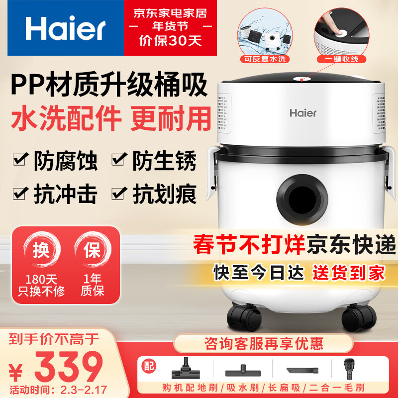海尔(Haier)桶式吸尘器家用大吸力强力大功率吸尘机干湿两用一键收线HZ-T810W价格:368.00元!