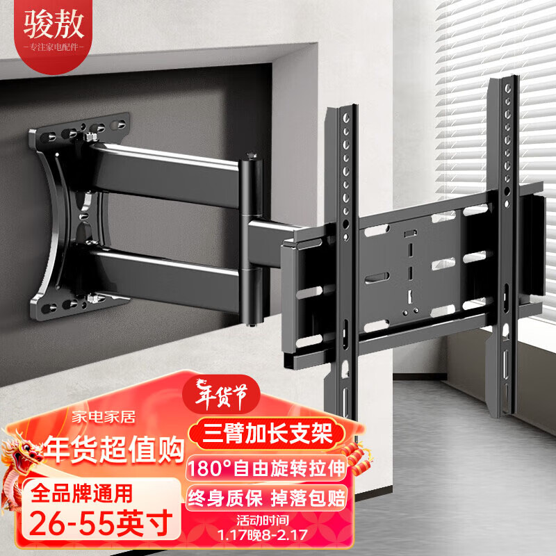 骏敖 电视支架伸缩旋转电视挂架通用适用于小米海信创维荣耀智慧屏26-55英寸壁挂内嵌墙架子价格:125.00元!