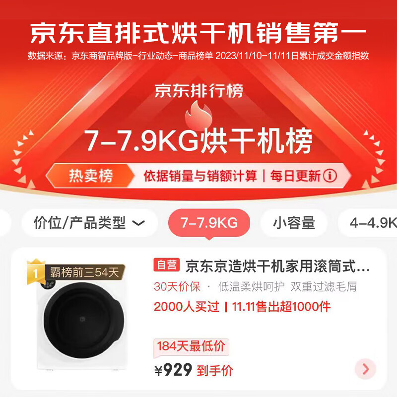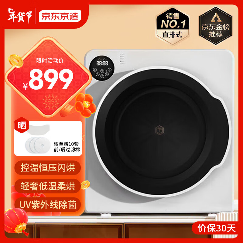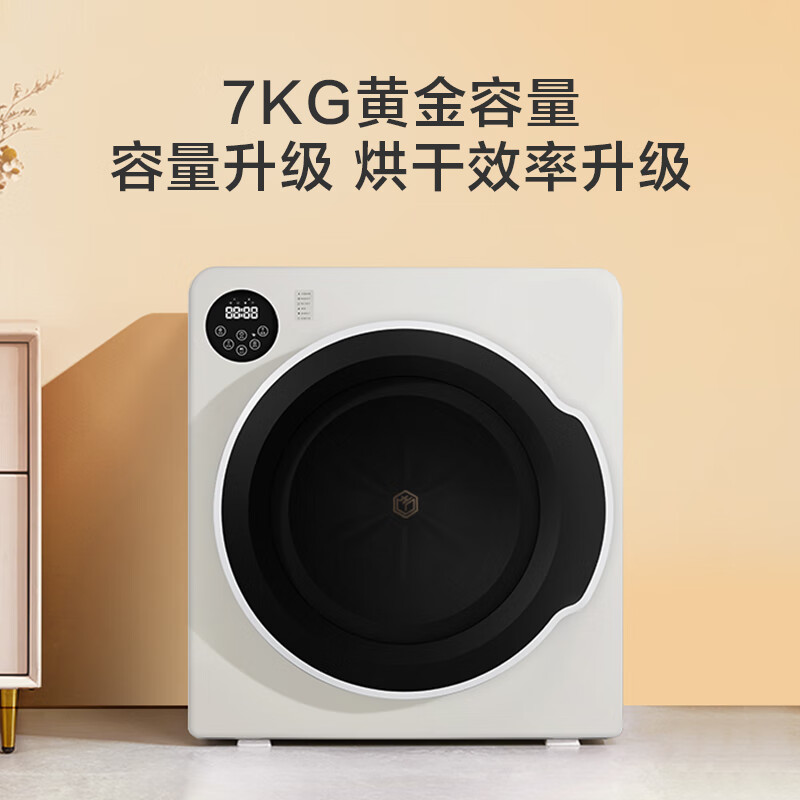 京东京造烘干机家用滚筒式干衣机烘衣机7KG智能升级款 低温轻奢柔烘 婴儿内衣除菌除螨祛味除毛发直排式价格:899.00元!