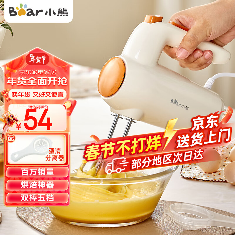 小熊(Bear)打蛋器 家用电动打蛋机 迷你奶油打发器 烘焙手持自动搅蛋器搅拌器 DDQ-B01K1价格:54.00元!