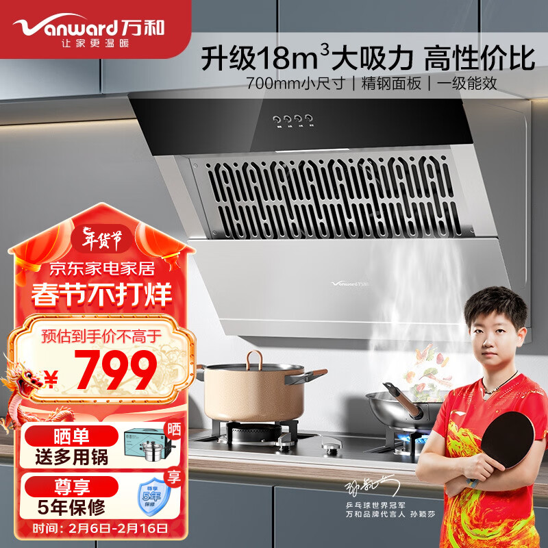 万和(Vanward)侧吸式家用抽油烟机 18m3/min大吸力 不锈钢机身 小尺寸小户型 脱排油烟机 CXW-260-J325S价格:799.00元!