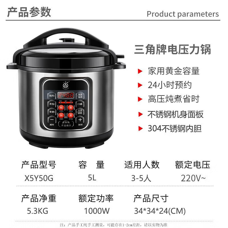三角牌(Triangle)电锅家用大容量电高压锅不锈钢高压电饭锅智能预约多功能煲汤锅炖汤锅 5升 304不锈钢内胆(适合4-6人)价格:259.00元!