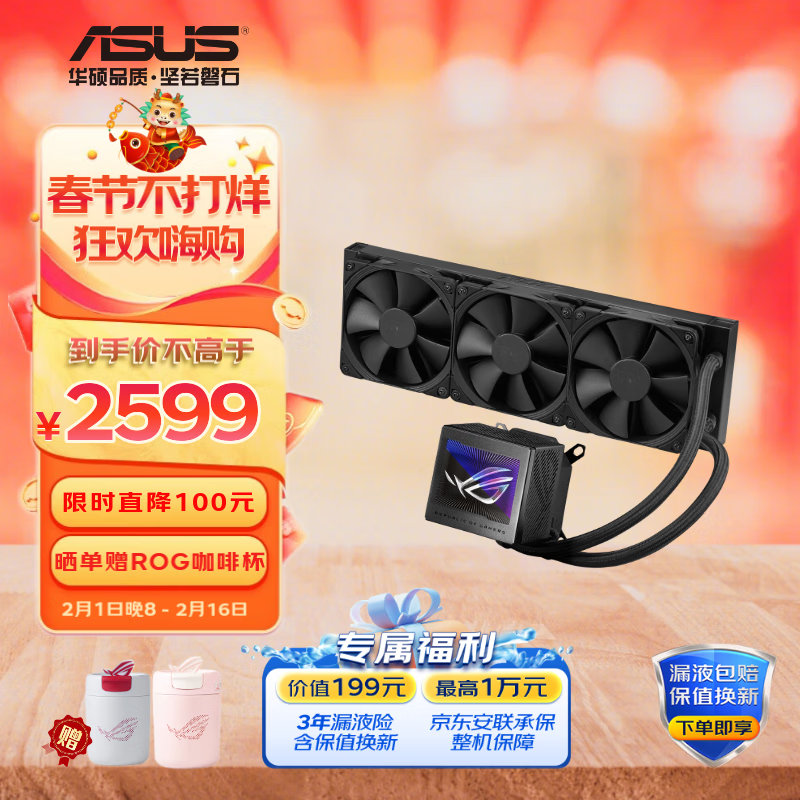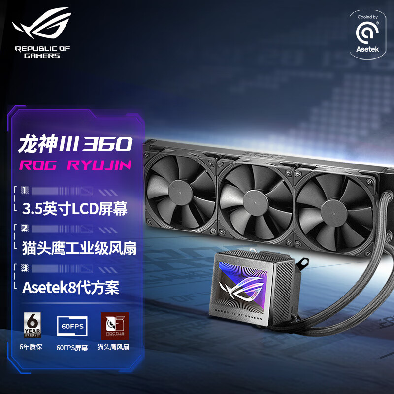 华硕(ASUS)ROG龙神三代360一体式水冷散热器 Asetek8代方案/3.5英寸LCD屏/猫头鹰风扇价格:2599.00元!