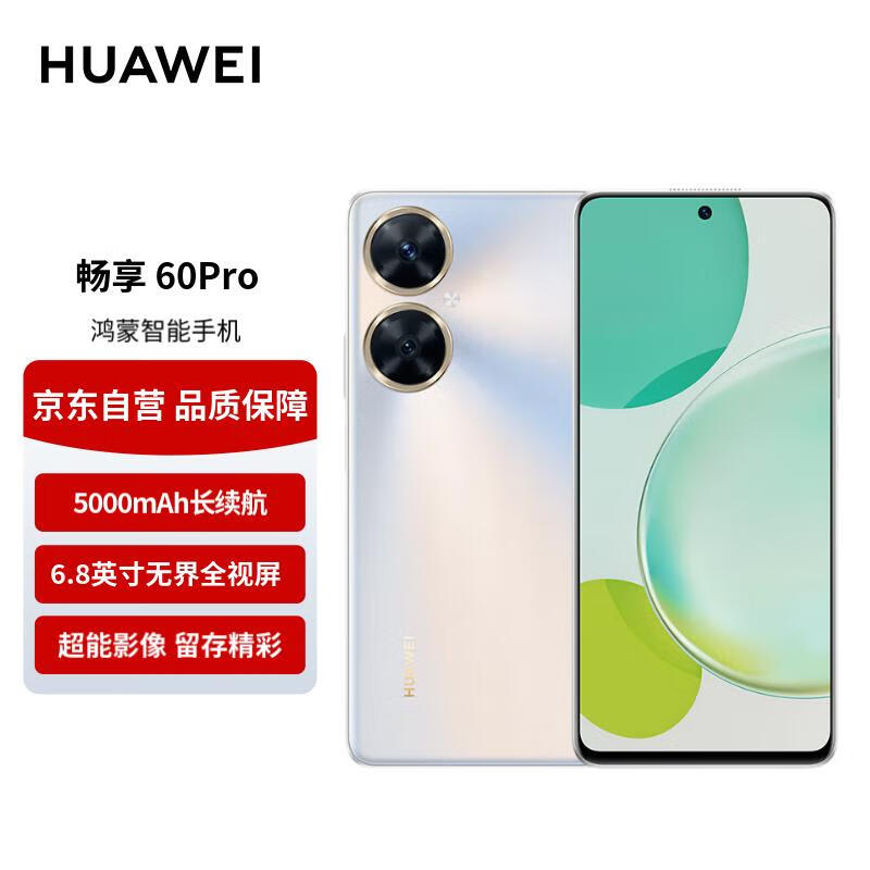 华为手机畅享60Pro 5000mAh长续航 40W快充 6.8英寸无界全视屏 双卡双待 256GB 星河银 鸿蒙智能手机价格:1399.00元!