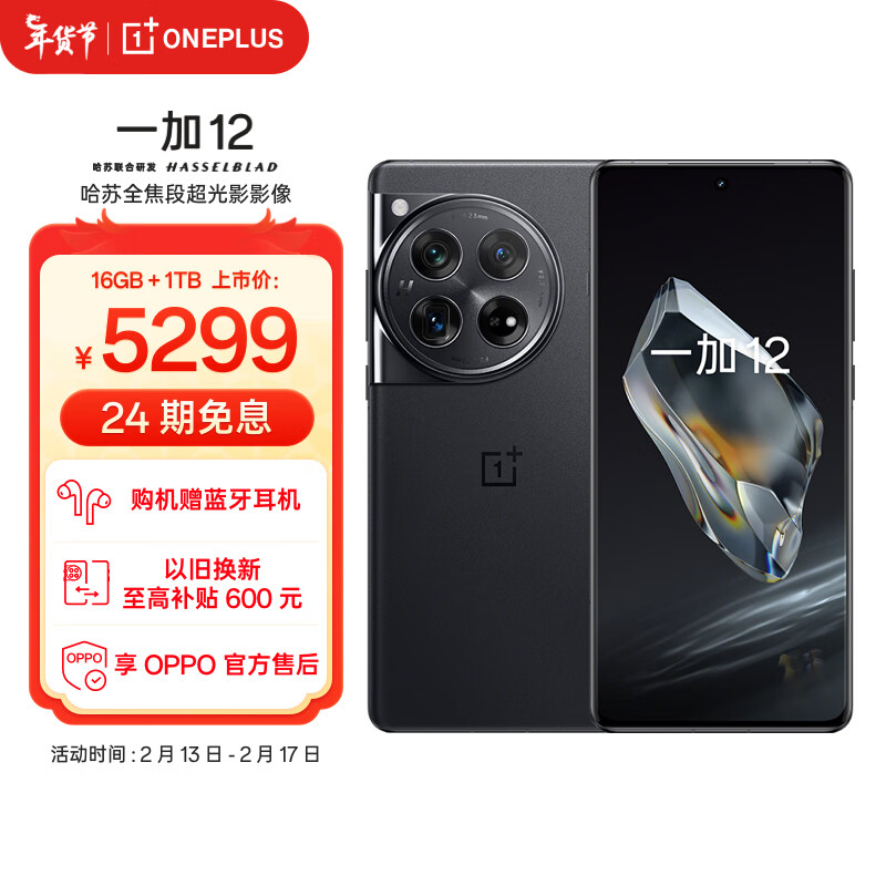 一加 12 16GB+1TB 岩黑 哈苏全焦段超光影影像 第三代高通骁龙8旗舰芯片 OPPO AI手机 5G游戏手机价格:5299.00元!