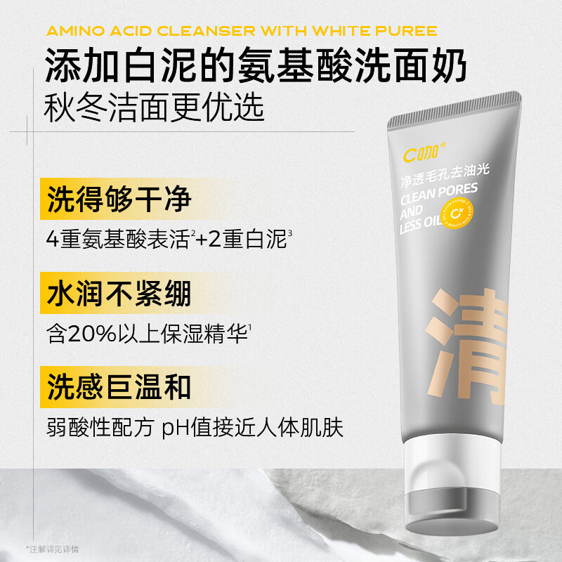 C咖氨基酸双管洗面奶白泥清透净肤洁面乳男女控油保湿80g*3支价格:159.90元!