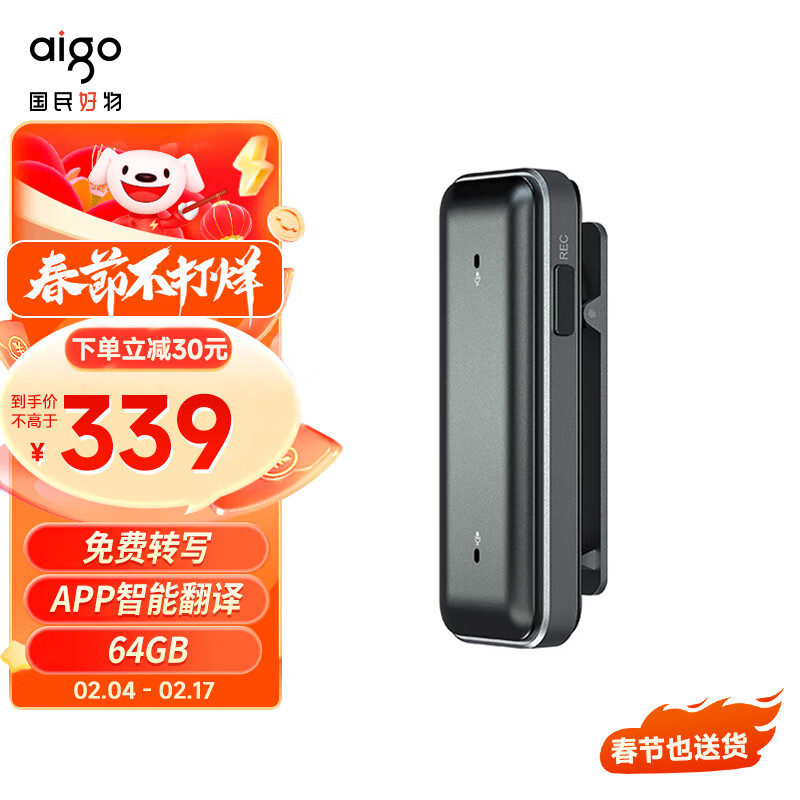 爱国者aigo SR20p智能Ai录音笔 专业高清降噪 会议录音转文字 录音器 同声传译 64G黑色价格:369.00元!