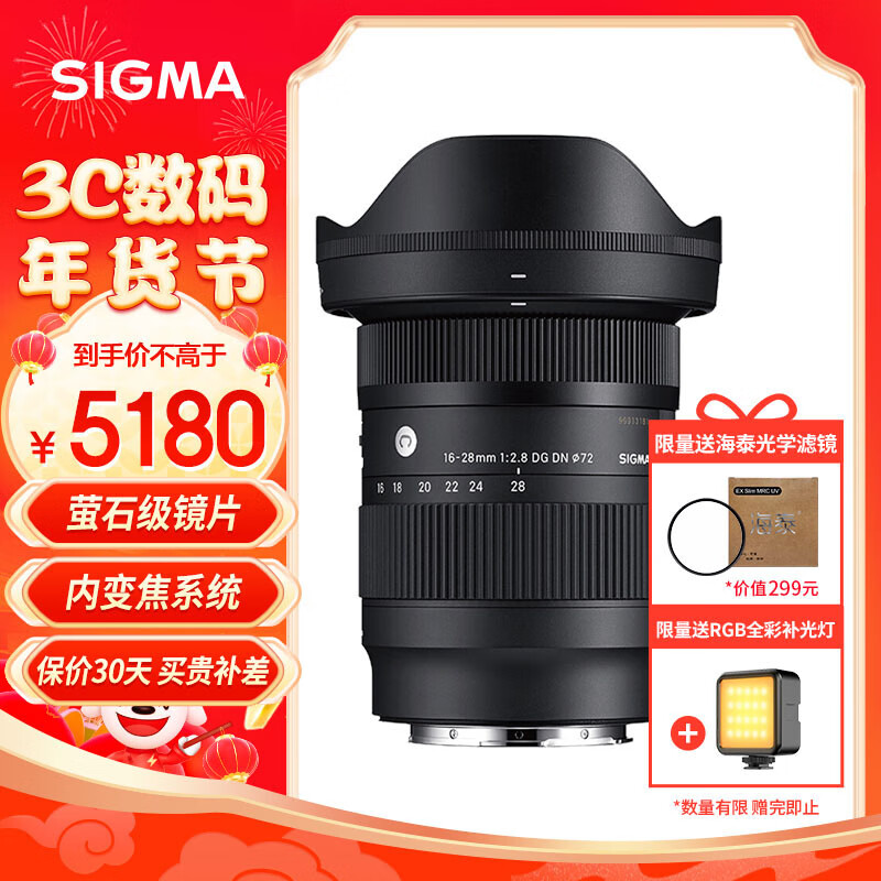 适马(SIGMA)16-28mm F2.8 DG DN |Contemporary 全画幅微单 超广角变焦镜头 风光摄影(索尼E卡口)价格:5180.00元!
