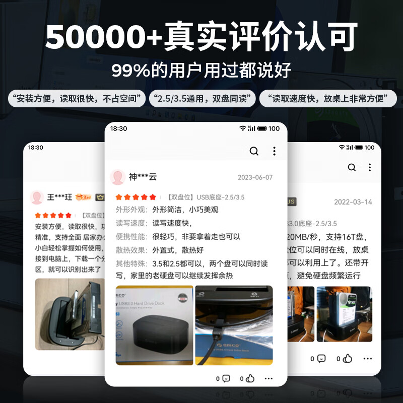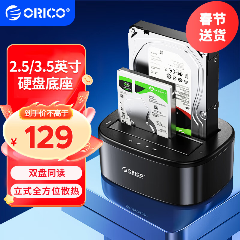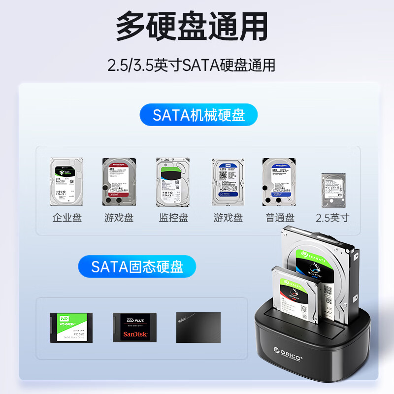 奥睿科(ORICO)硬盘盒底座3.5/2.5英寸SATA串口机械固态外置外接移动笔记本台式读取硬盘笼 双盘位6228US3价格:139.00元!