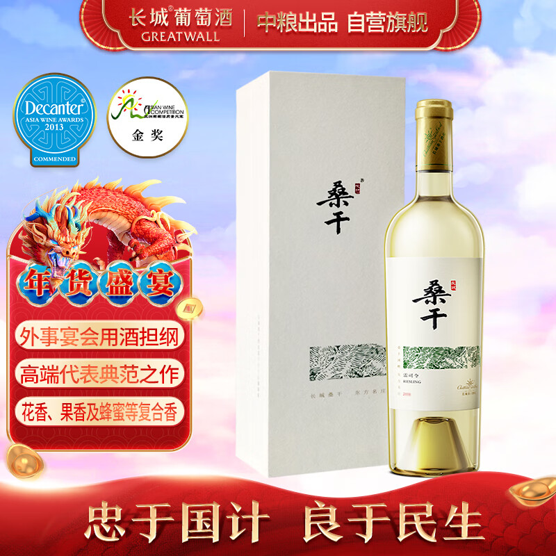 长城 桑干酒庄 雷司令2018 干白葡萄酒 礼盒 750ml 单瓶装 送礼礼品价格:458.00元!