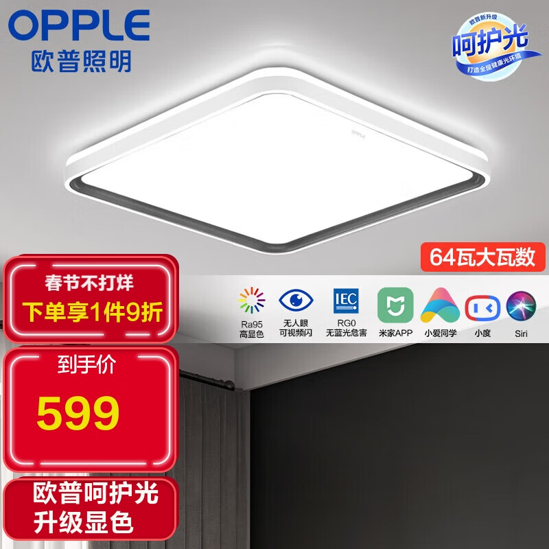 欧普(OPPLE)智能LED呵护光客卧吸顶灯具RA95米家智控MX5050-D64-WLTT-03价格:665.00元!