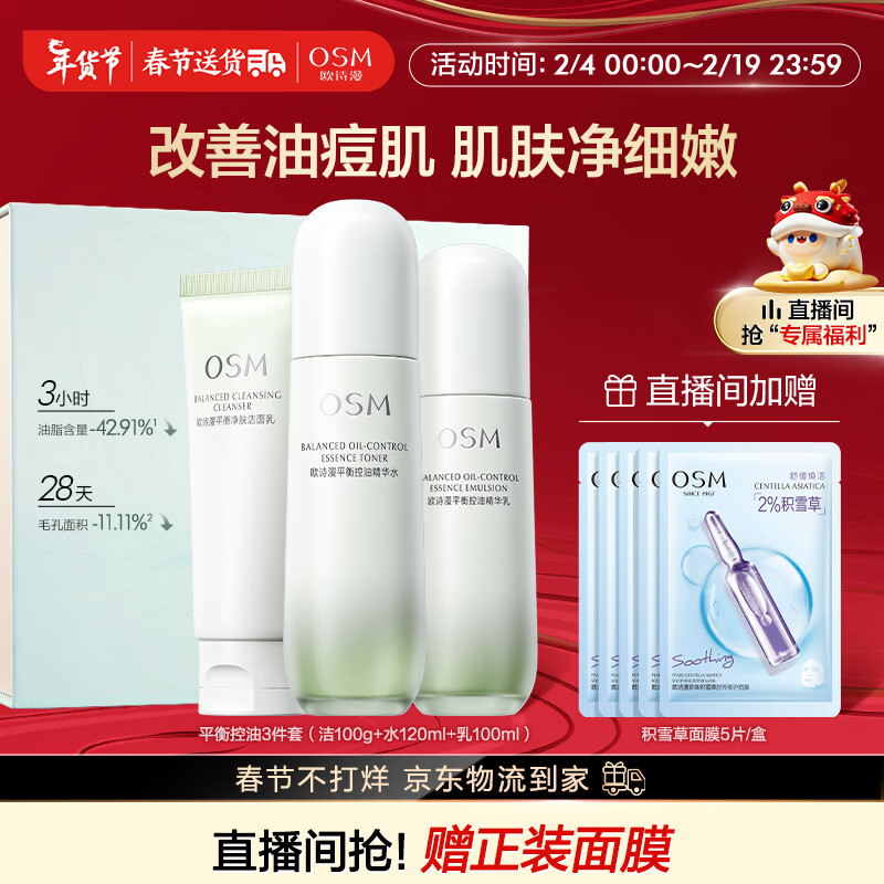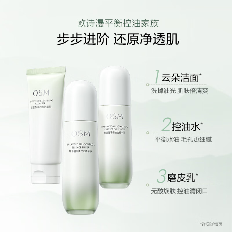 欧诗漫(OSM)平衡控油水乳套装(洁面+爽肤水+乳液)舒缓护肤品男女新年价格:199.90元!