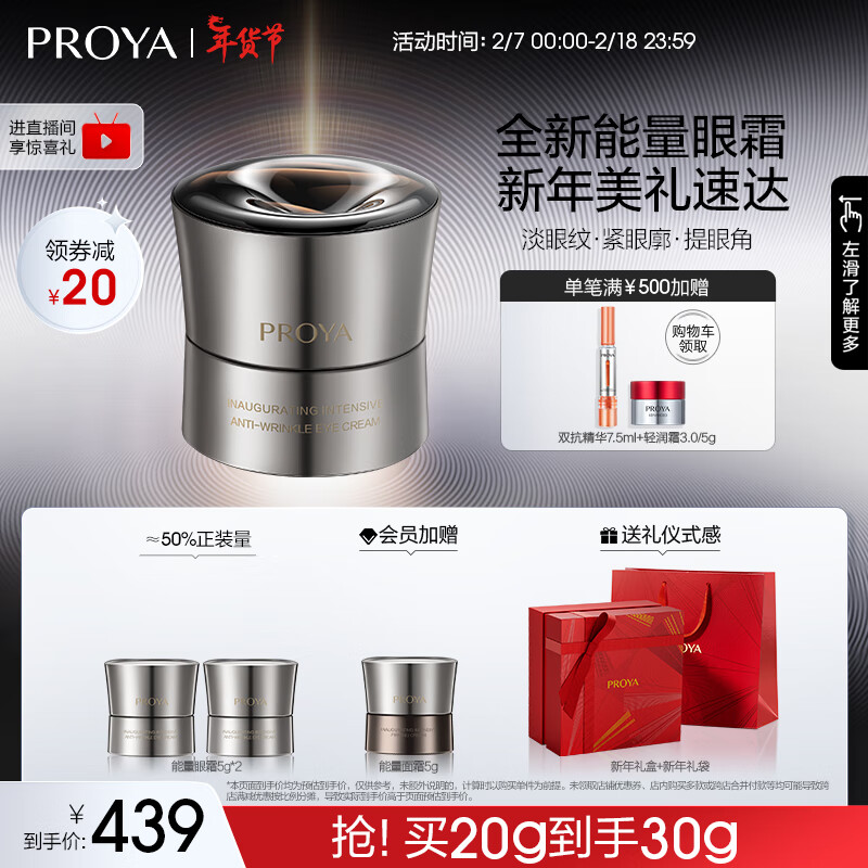 珀莱雅(PROYA)能量眼霜提拉紧致抗皱眼霜淡化细纹化妆品眼部精华20g 生日礼物女价格:459.00元!