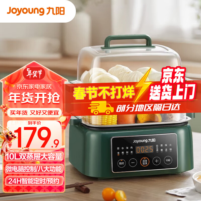 九阳(Joyoung)10L大容量电蒸锅电煮锅电热锅透明可视智能预约多用途锅年货送长辈送老人GZ198价格:179.90元!