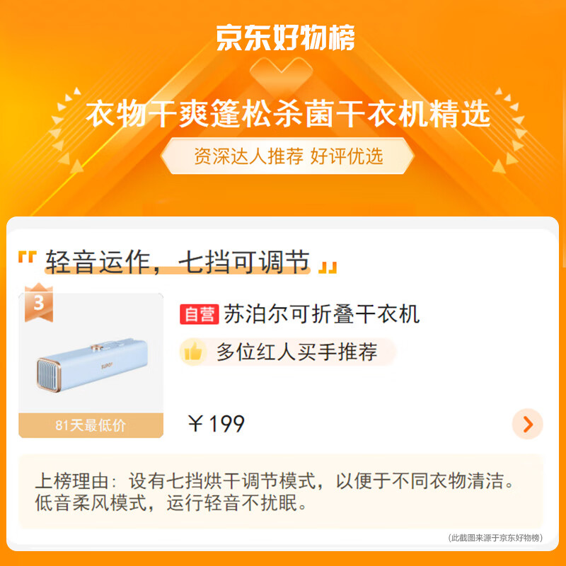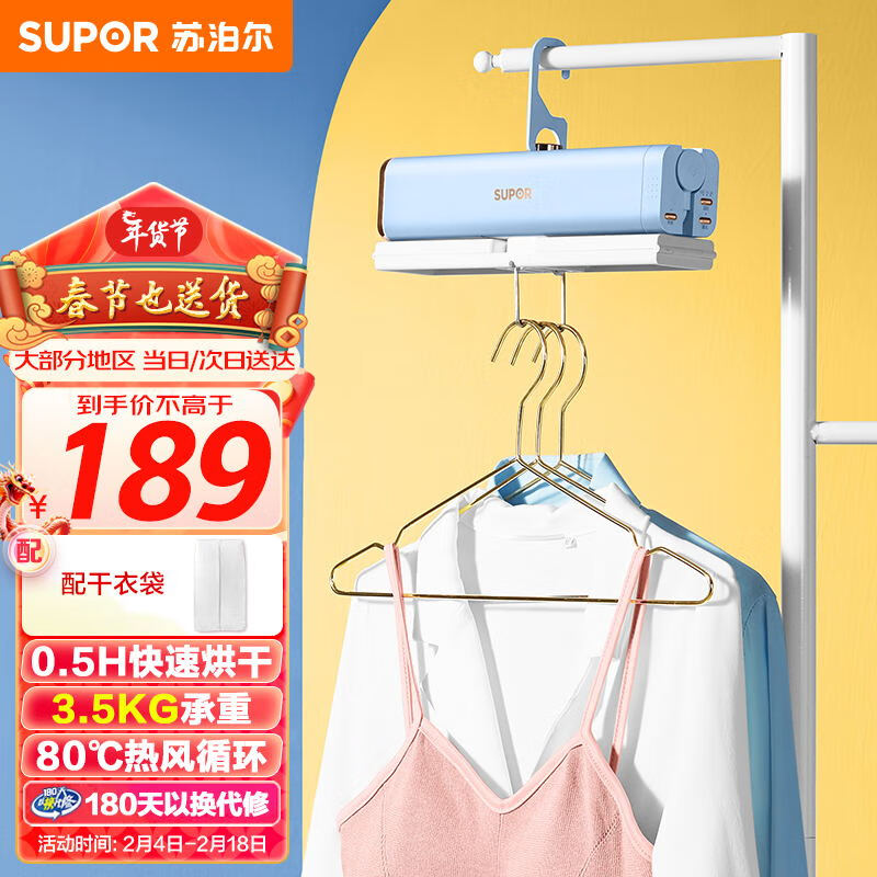 苏泊尔(SUPOR )便携干衣机小型烘衣机家用差旅宿舍干衣神器 快速干衣便携可折叠HG61BX-05浅蓝色价格:210.00元!