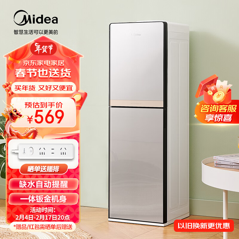美的(Midea)饮水机下置式家用立式温热型热罐快速加热下置水桶 自动上水 缺水提醒 YR1611S-X价格:569.00元!