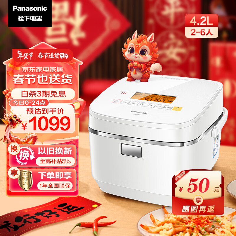 松下(Panasonic)电饭煲电饭锅4.2L家用IH变频加热 3-8人多功能电饭煲 备长炭内胆 可预约 SR-HQ153价格:999.00元!