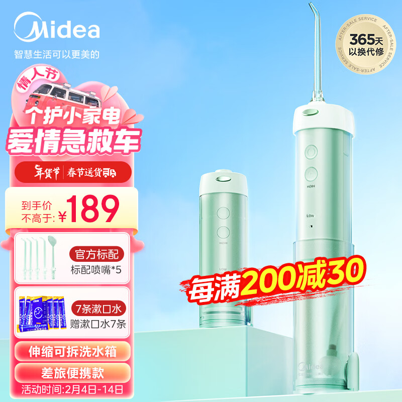 美的(Midea)冲牙器便携式 洗牙器水牙线洁牙器 电动洗牙神器 礼物送男朋友女朋友家用洁牙仪 MC-BL0102价格:230.00元!