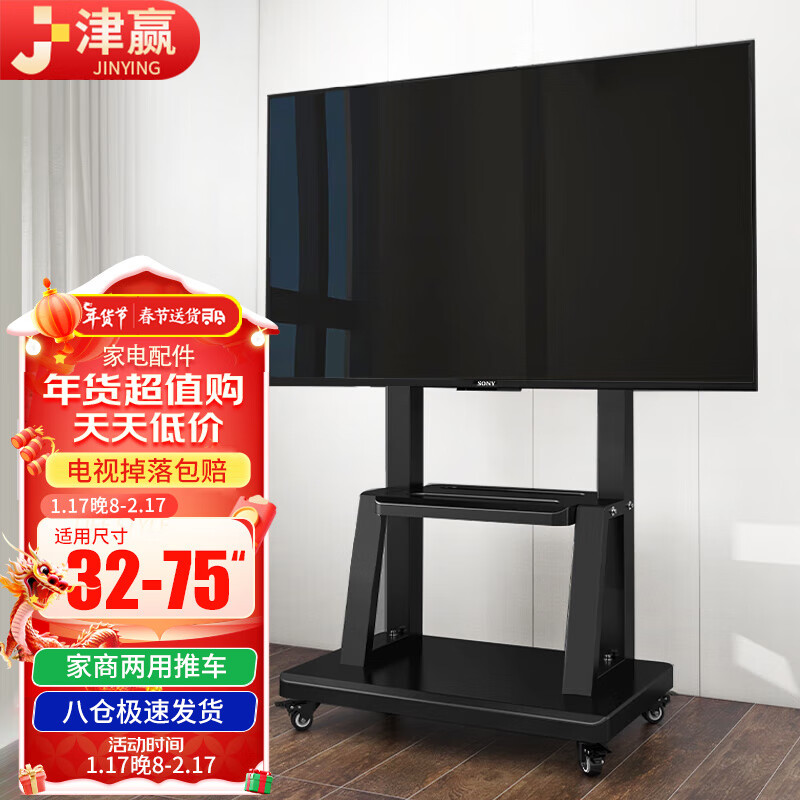 津赢移动电视支架32-75英寸电视落地推车视频会议电视支架可移动挂架鸿合希沃立式广告机架价格:178.00元!