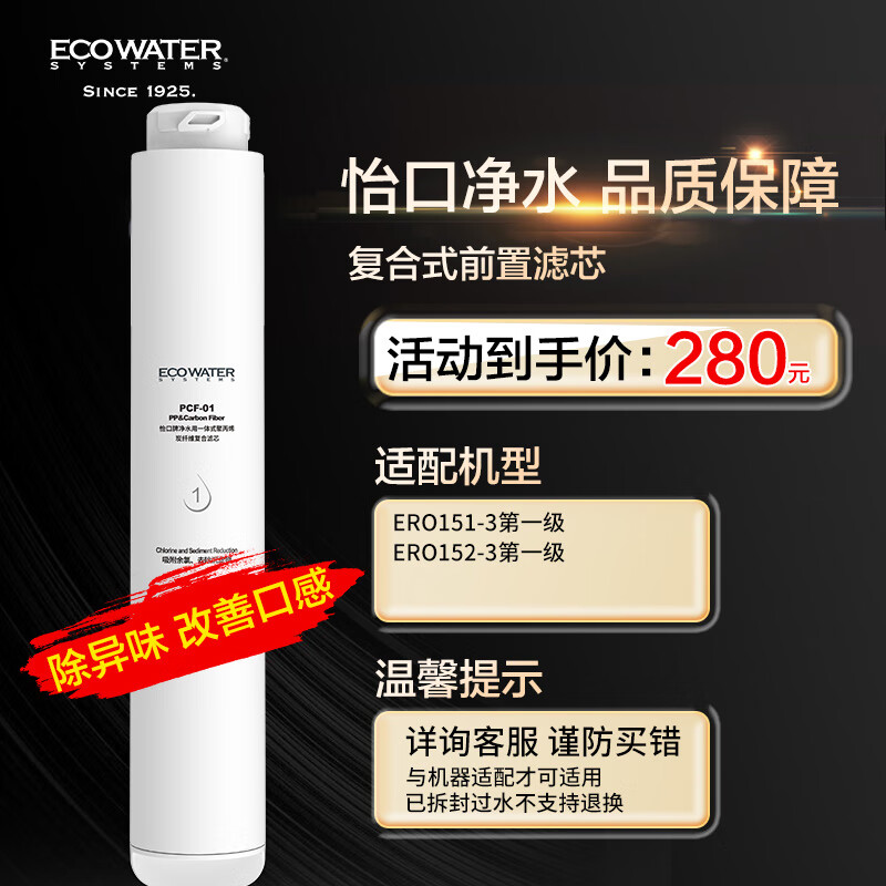 怡口净水(ECOWATER) 聚丙烯炭纤维复合滤芯PCF-01 适用ERO151-3 ERO152-3系列价格:280.00元!