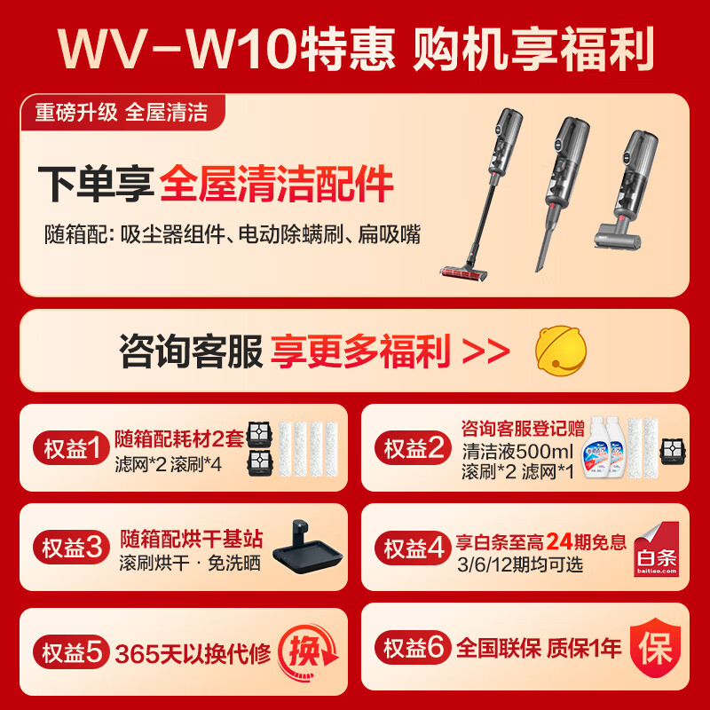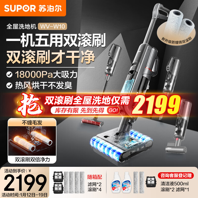 苏泊尔(SUPOR)双滚刷家用洗地机洗拖一体全自动手持吸尘器电动拖地机无线自清洁烘干擦地 WV-W10价格:2199.00元!