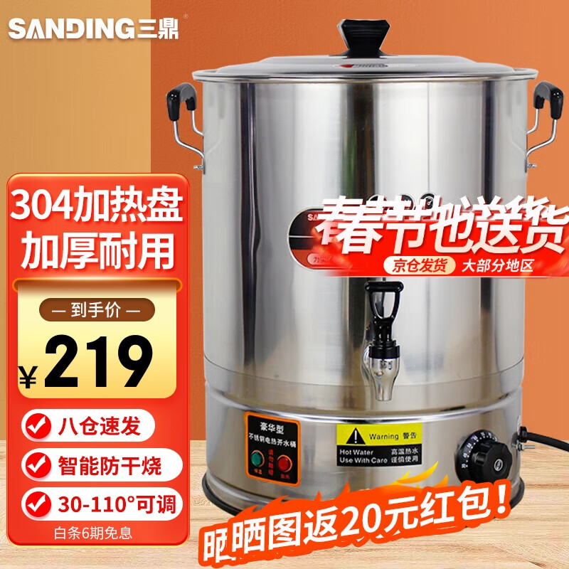 三鼎电热开水桶开水器商用烧水桶奶茶店家用不锈钢保温热水桶大容量 SD-30L-D价格:229.00元!