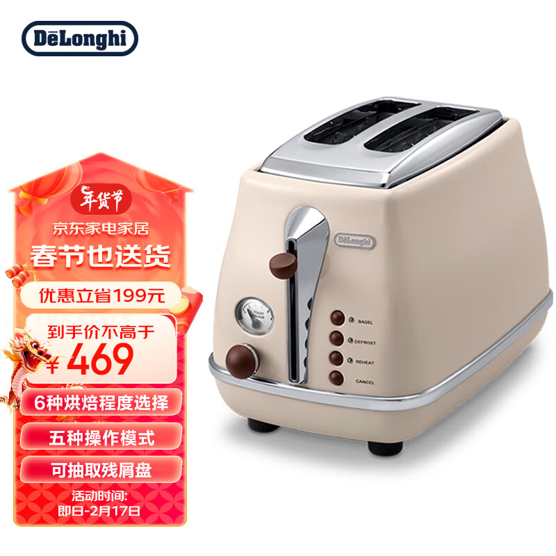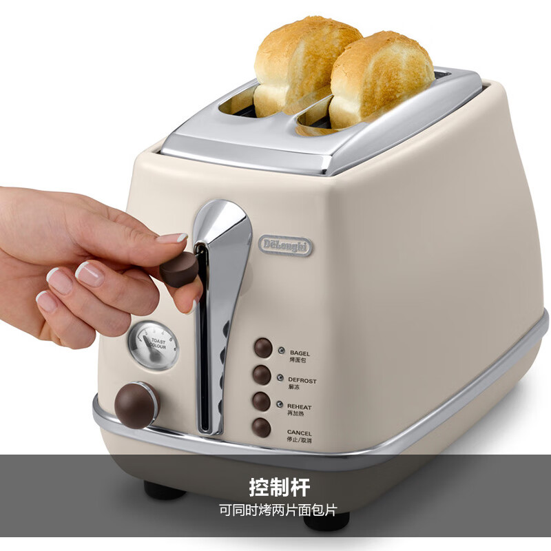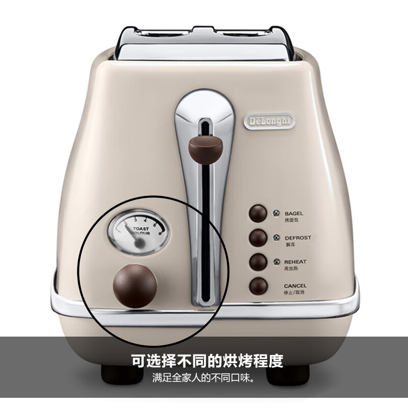 德龙(Delonghi)面包机 复古系列多士炉 不锈钢内胆烤吐司机 家用面包机 烤面包机 CTO2003.VBG 奶油白价格:469.00元!