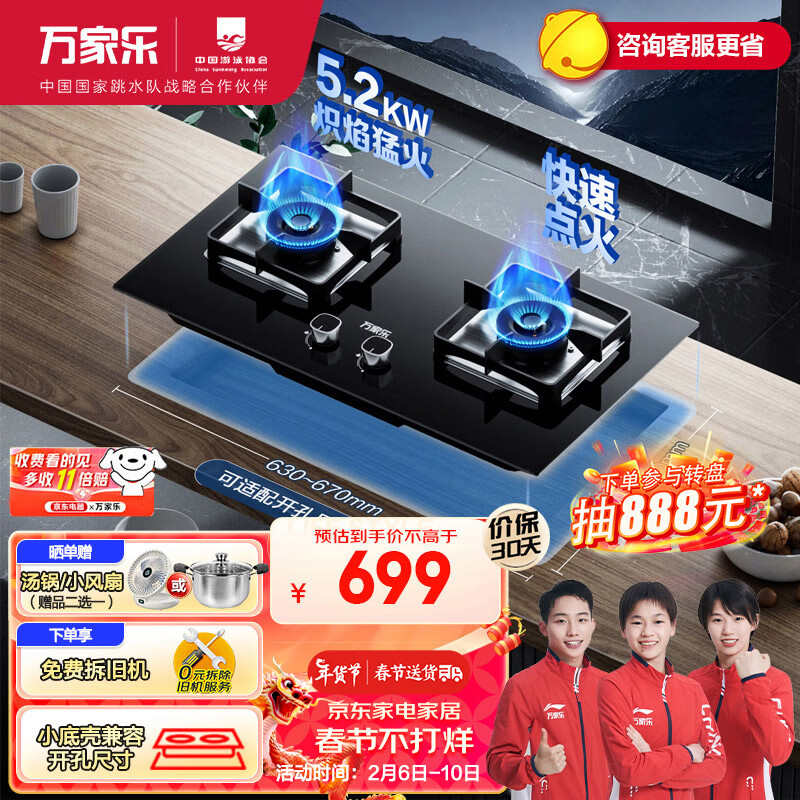 万家乐燃气灶 5.2kw大火力嵌入式台式两用燃气灶天然气双灶具 可适配开孔尺寸 全进风天然气灶JZT-LAY8价格:799.00元!