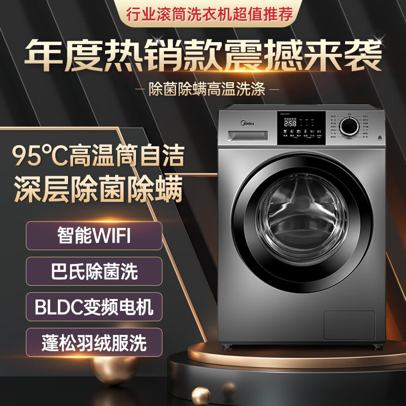 美的(Midea)滚筒洗衣机全自动10公斤大容量 一级变频节能 巴氏除菌洗 WIFI智控 除菌除螨 MG100VC133WY价格:1699.00元!