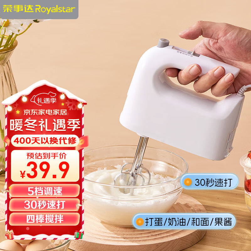 荣事达(Royalstar)打蛋器 家用电动打蛋机奶油打发器烘焙搅拌器手持自动蛋清搅蛋器EGK132L价格:39.90元!