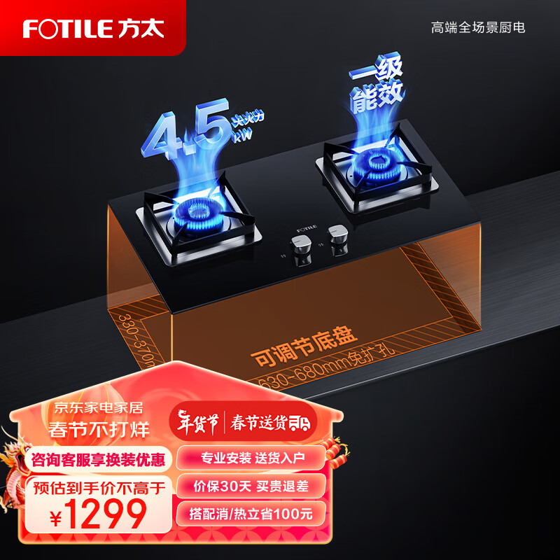 方太灶具 家用嵌入式燃气灶(天然气)4.5kW大火力 换装不改孔 猛火灶02-HT8BE.S价格:1299.00元!