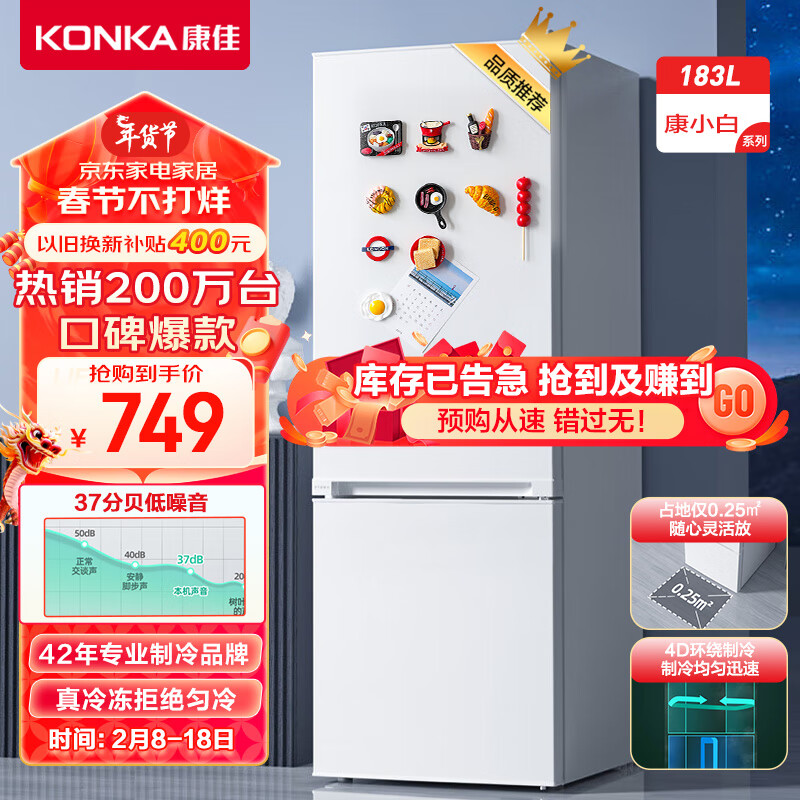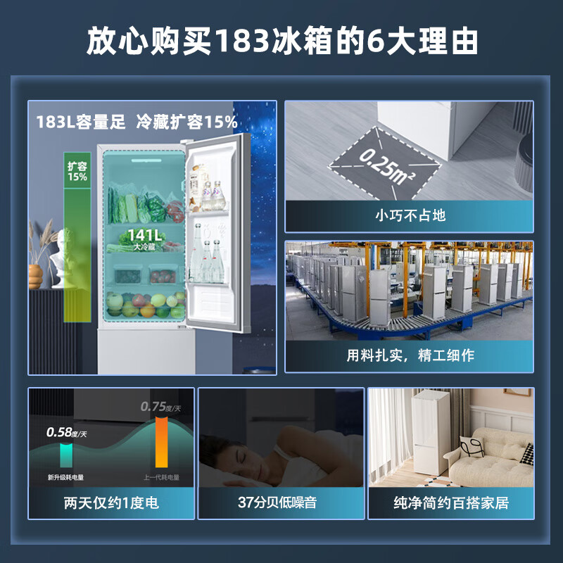 康佳183升小冰箱小型家用出租房办公室宿舍双开门两门双门二门电冰箱节能省电低音白色BCD-183GB2SU价格:749.00元!