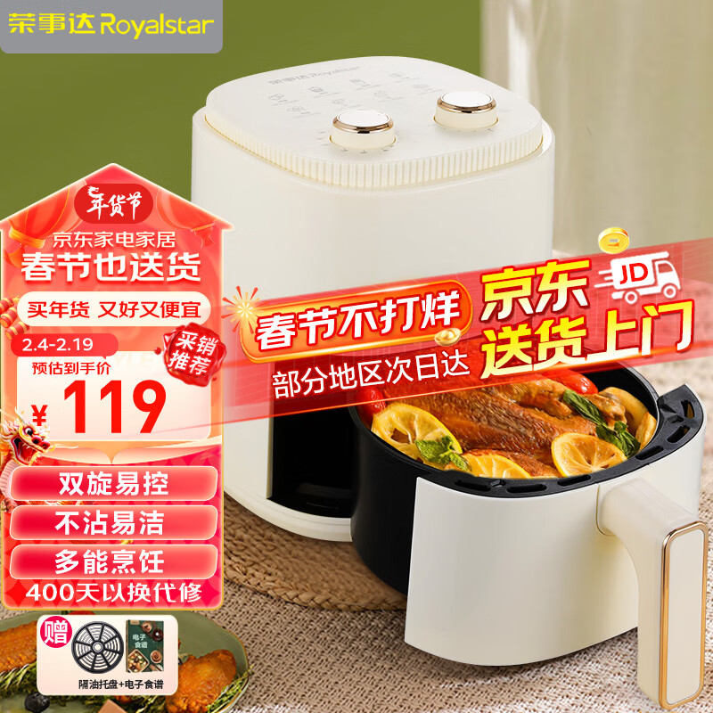 荣事达空气炸锅家用多功能3L小巧容量电炸锅无油烟不沾低脂煎炸锅薯条机RS-AF828价格:119.00元!