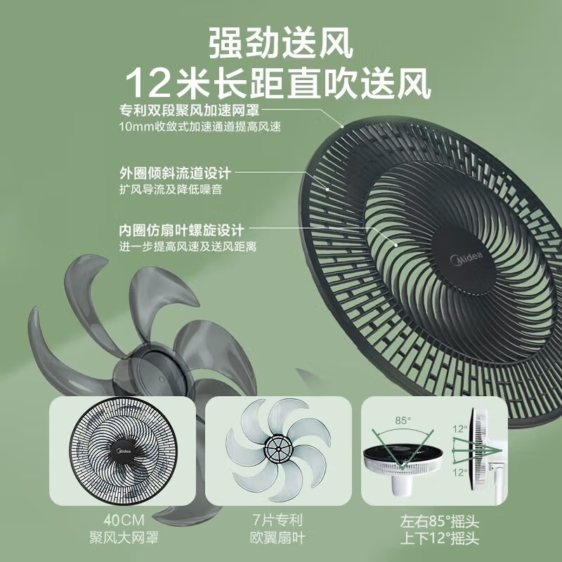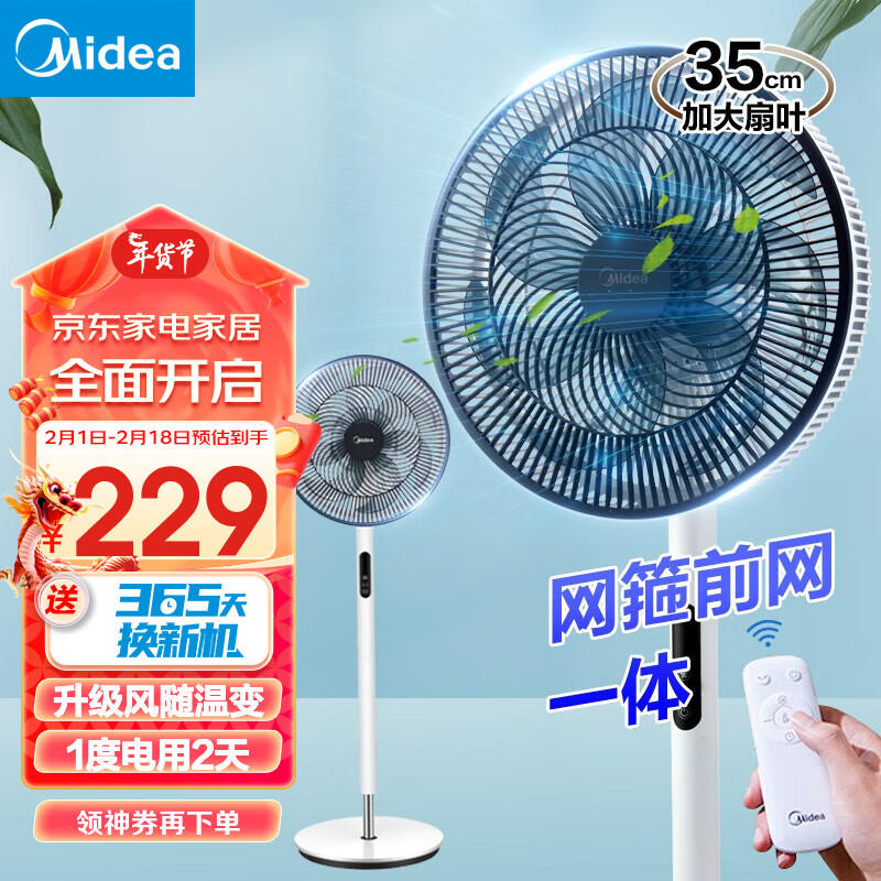 美的(Midea)电风扇 家用风扇 落地扇 立式轻音节能强风电扇 宿舍降温循环柔风自然风桌面小风扇 台式/遥控可选 【7叶落地遥控】35EA价格:299.00元!