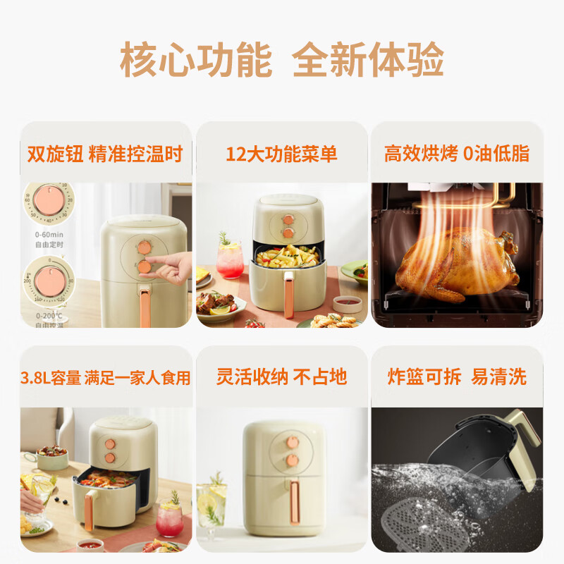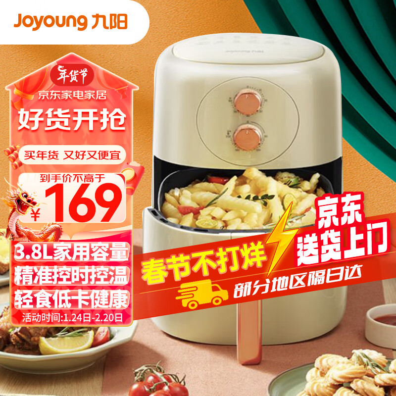 九阳(Joyoung)空气炸锅家用智能多功能 3.8L大容量 精准控时温无油低脂煎炸薯条机 KL38-VF136价格:169.00元!