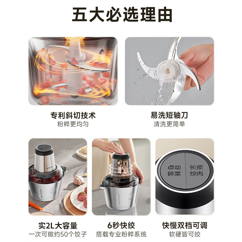 九阳(Joyoung)绞肉机家用 绞馅机 碎肉机 电动多功能料理搅拌打肉饺子肉馅蒜蓉机全钢 搅肉机S20-LA320价格:98.00元!