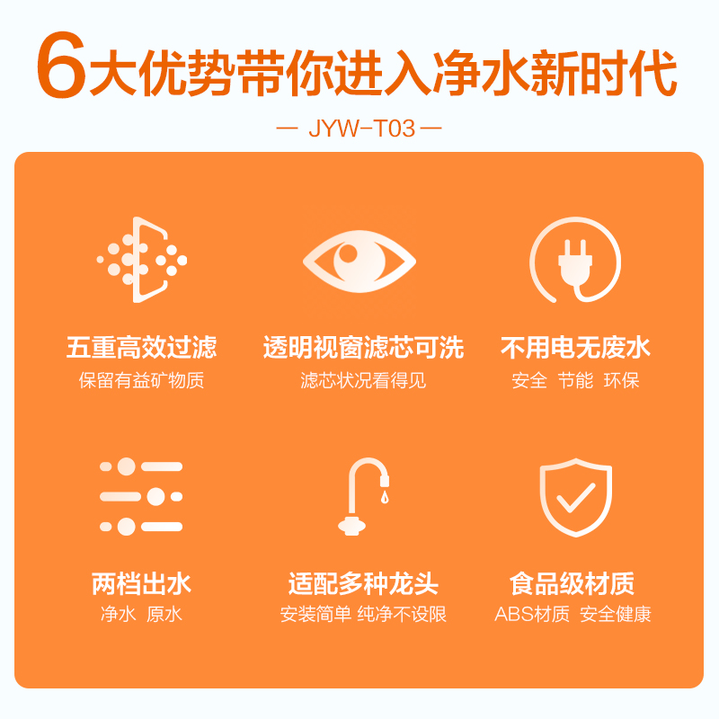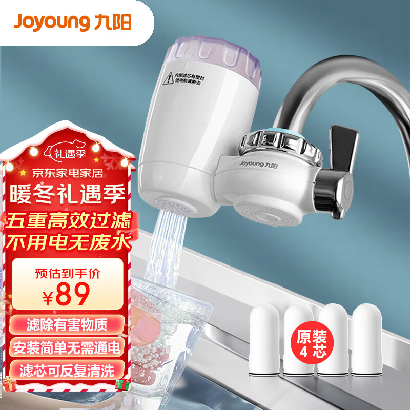 九阳(Joyoung)JYW-T03 1机4芯套装前置净水器水龙头台式净水机家用厨房过滤器自来水可视化可清洗滤芯价格:89.00元!
